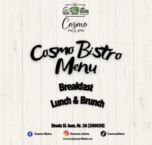 Our Story Cosmo Bistro Menu Cosmo was born out of 20 year culinary journey across the globe, tasting food & drink straight from the world”s gratest kitchens and bars. Now we are bringing these experiences in, Brasov. We pride ourselves on providing quality, seasonal ingredients, and support our local suppliers whenever possible Our vision is simple: To create the perfect enviroment to come and enjoy great food and drink whilst, catching up with friends and family. We know what good food, good drinks, and great service looks like and what it takes to deliver a memorable experience. C O S M O Culinary Outstanding Simple Memorable Original